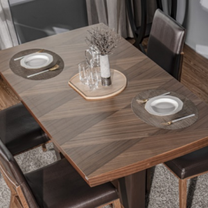 Bàn ăn Comodo với đường nét đơn giản, màu sắc tự nhiên giúp ta có thể cảm nhận những vân gỗ tự nhiên tinh tế của cây óc chó (Walnut), làm cho bộ sản phẩm càng trở nên sang trọng và đẳng cấp
